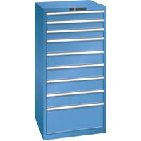 Dílenská zásuvková skříň LISTA, 9 zásuvek = 3 x 100 / 5 x 150 / 1 x 300mm, 717x725x1450mm, nosnost 200kg