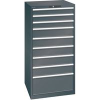 Dílenská zásuvková skříň LISTA, 9 zásuvek = 3 x 100 / 5 x 150 / 1 x 300mm, 717x725x1450mm, nosnost 200kg