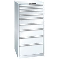 Dílenská zásuvková skříň LISTA, 9 zásuvek = 2 x 75 / 2 x 100 / 2 x 150 / 2 x 200 / 1 x 300mm, 717x725x1450mm