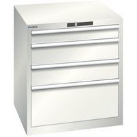 Dílenská zásuvková skříň LISTA, 717x725x800mm, 4 zásuvky, světle šedá