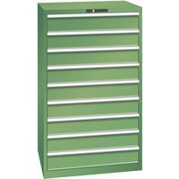 Dílenské zásuvkové skříně LISTA, 9 zásuvek = 9x150mm, nosnost zásuvky 75kg, 870x725x1450mm, zelená