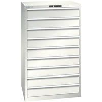 Dílenské zásuvkové skříně LISTA, 9 zásuvek = 9x150mm, nosnost zásuvky 75kg, 870x725x1450mm, světle šedá