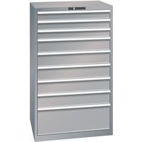 Dílenské zásuvkové skříně LISTA, 9 zásuvek = 3x100mm +5x150 +1x300mm, nosnost zásuvky 75kg, 870x725x1450mm