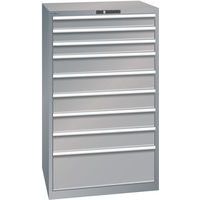 Dílenské zásuvkové skříně LISTA, 9 zásuvek = 3x100mm +5x150 +1x300mm, nosnost zásuvky 200kg, 870x725x1450mm