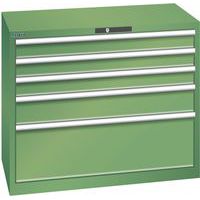 Dílenská zásuvková skříň Lista, nosnost 75 kg, 5 zásuvek, zelená