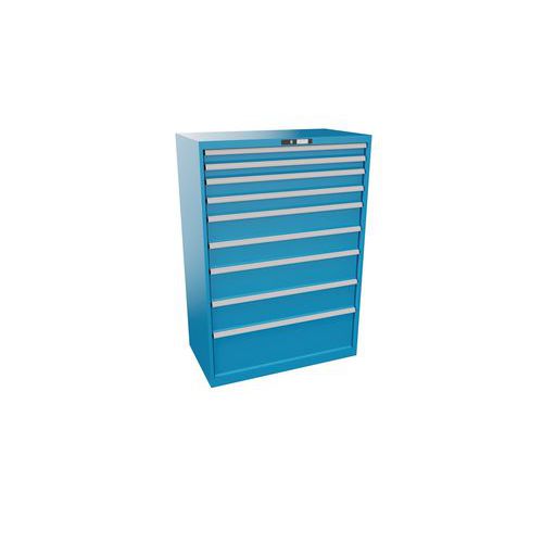 Dílenská zásuvková skříň Lista, nosnost 75 kg, 9 zásuvek, světle modrá