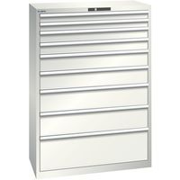 Dílenská zásuvková skříň Lista, nosnost 75 kg, 9 zásuvek, světle šedá