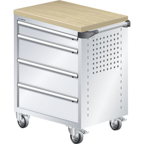 - Dílenské zásuvkové vozíky LISTA, pracovní deska z multiplexní dýhy, 4 zásuvky