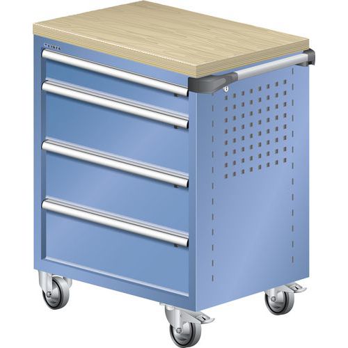 - Dílenské zásuvkové vozíky LISTA, pracovní deska z multiplexní dýhy, 4 zásuvky