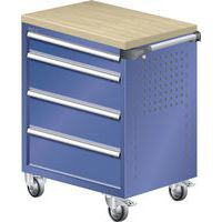 Dílenský zásuvkový vozík LISTA, pracovní deska z multiplexní dýhy, 4 zásuvky, tmavě modrá