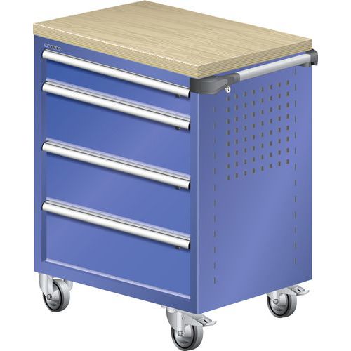 - Dílenské zásuvkové vozíky LISTA, pracovní deska z multiplexní dýhy, 4 zásuvky