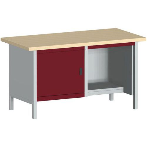 Dílenský stůl Bott Cubio Storage, 84 x 150 x 75 cm, 1 skříňka, police, multiplex, šedá-červená Dílenský stůl Bott Cubio Storage, 84 x 150 x 75 cm, 1 skříňka, police, multiplex, šedá-červená