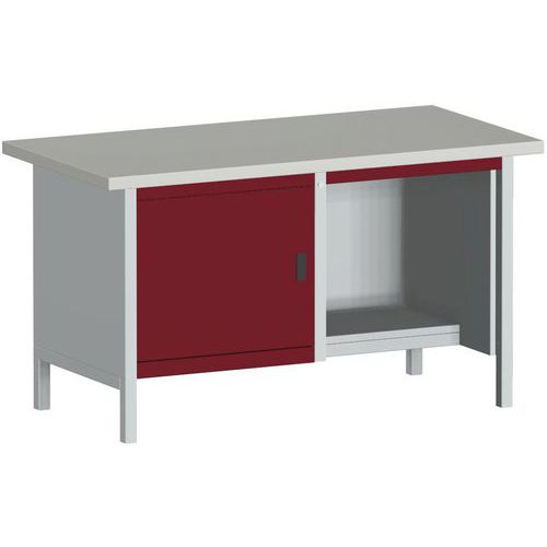 Dílenský stůl Bott Cubio Storage, 84 x 150 x 75 cm, 1 skříňka, police, linoleum, šedá-červená Dílenský stůl Bott Cubio Storage, 84 x 150 x 75 cm, 1 skříňka, police, linoleum, šedá-červená