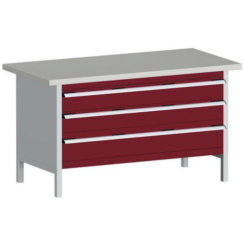 Dílenský stůl Bott Cubio Storage, 84 x 150 x 75 cm, 3 zásuvky, linoleum, šedá-červená Dílenský stůl Bott Cubio Storage, 84 x 150 x 75 cm, 3 zásuvky, linoleum, šedá-červená