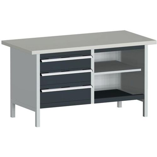 Dílenský stůl Bott Cubio Storage, 84 x 150 x 75 cm, 3 zásuvky, otevřený prostor s policí, linoleum/multiplex