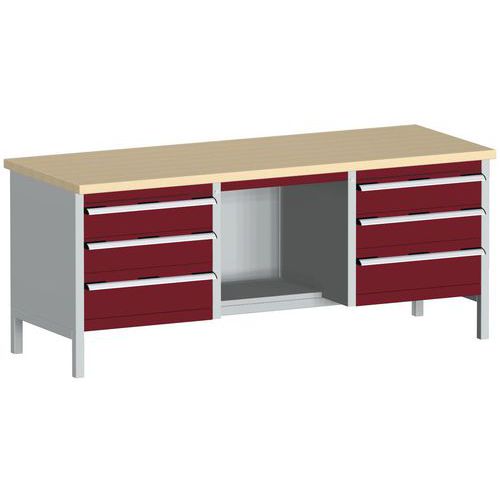 Dílenský stůl Bott Cubio Storage, 84 x 200 x 75 cm, 6 zásuvek, police, multiplex/linoleum