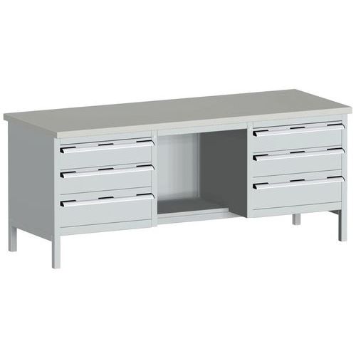Dílenský stůl Bott Cubio Storage, 84 x 200 x 75 cm, 6 zásuvek, police, multiplex/linoleum