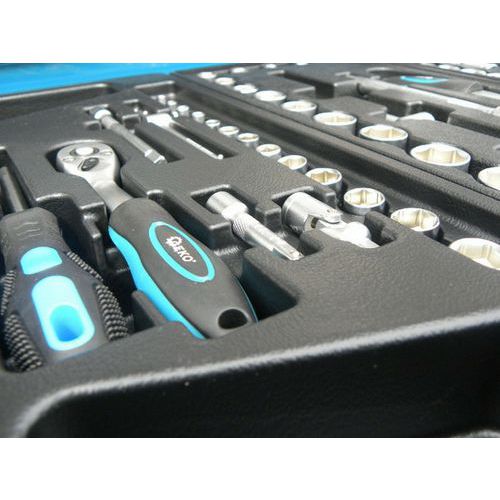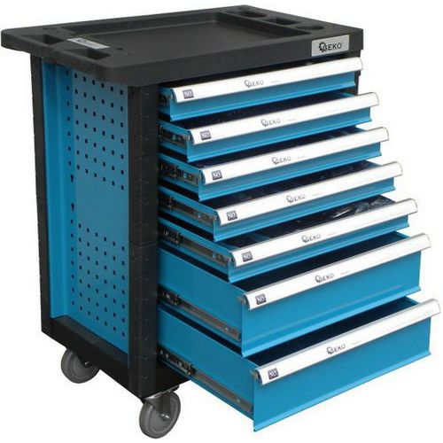 Dílenský vozík s bohatou výbavou čítající 272 ks nářadí v 7 přihrádkách.