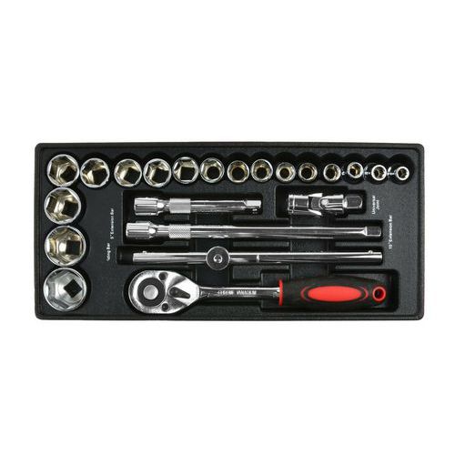 - Šestihranné hlavice 1/2 z CrV 50BV30 oceli: 10, 11, 12, 13, 14, 15, 16, 17, 18, 19, 20, 21, 22, 23, 24, 27, 30, 32 mm