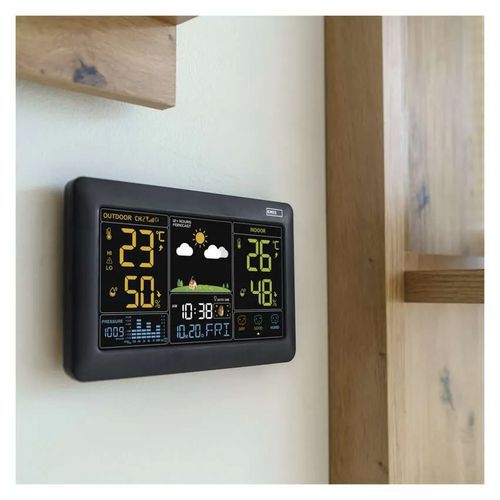 - Měření vnitřní a venkovní teploty a vlhkosti, měření a záznam hodnoty tlaku, předpověď počasí, datum, zobrazení fáze měsíce.