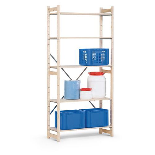 Dřevěné regály, základní, 209 x 97 x 30 - 50 cm, 5 polic, smrk