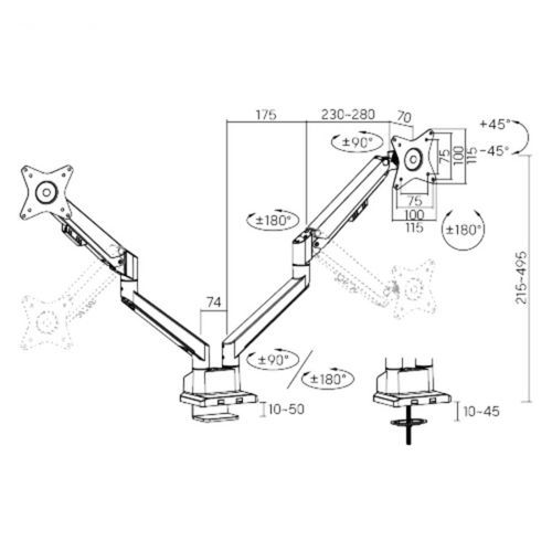 | Název produktu | Držák monitoru Brateck LDT62-C024, dvě ramena vedle sebe, plynová vzpěra |