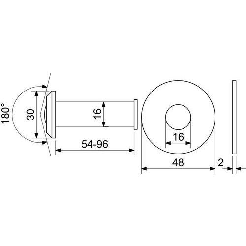 Dveřní kukátko vč. 2 ks podložek, matný nikl