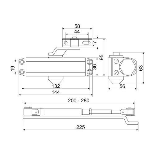 Dveřní zavírač RZ.202 pro interiérové dveře, černý