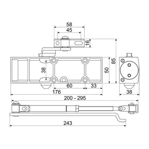 Dveřní zavírač RZ.903 pro interiérové dveře, černý