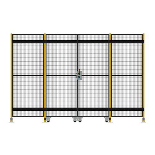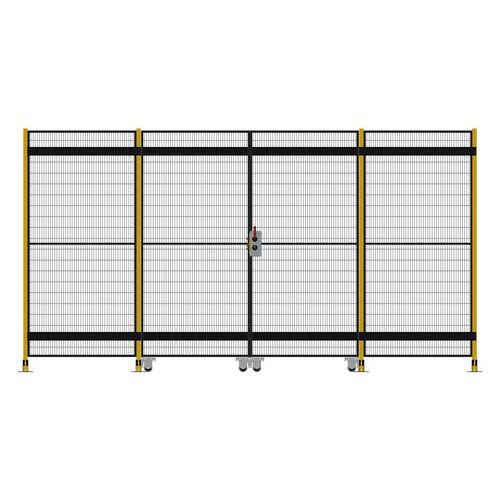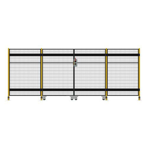 Kompletní dvoukřídlé posuvné dveře s cylindrickým zámkem pro systém ochranného oplocení. Cylindrický zámek na klíč umožňuje vstup pouze oprávněným osobám. Teleskopické vedení umožnuje použití dveří s minimálním nárokem na prostor. Bezpečnostní oplocení slouží k zajištění bezpečnosti zaměstnanců a návštěvníků tím, že omezuje přístup do nebezpečných nebo citlivých prostor. Chrání před neoprávněným přístupem osob ke strojům a zařízením, vandalismem a krádežemi. Systém oplocení je navržen a vyroben v souladu s normou EN ISO 14120 a splňuje bezpečnostní požadavky hodnocení rizik.
