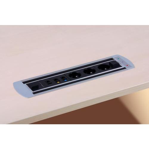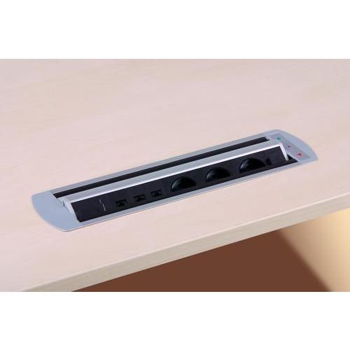 Otočné panely s elektrickými, datovými a AV přípojkami slouží k zabudování do konferenčních či pracovních stolů. Otáčení zásuvkových panelů je prováděno pomocí elektrického motoru s magnetickou spojkou. Součástí panelů je fotobuňka, která brání otočení a zavření, pokud je v jakékoliv zásuvce zastrčen kabel. Vhodné pro využití v kancelářích nebo školicích místnostech.