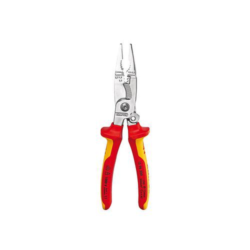 - Multifunkční kombinované kleště pro elektroinstalace. 6 funkcí v jednom nástroji. Vhodné na uchopování plochého i kulatého materiálu, ohýbání, odstranění otřepu, štípání kabelů, apod. Úzká čepel umožňuje lepší přístupnost, přídržný mechanismus pro uchopení věcí bez rozevírání kleští.