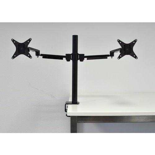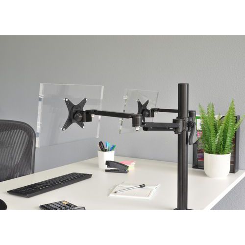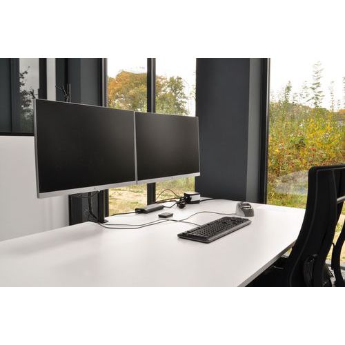 - Flexibilní skládací podpůrné rameno s tenkým, elegantním designem pro dva monitory.