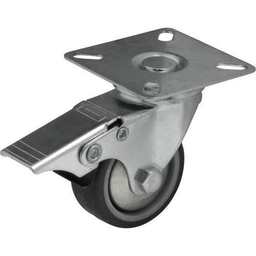 Přístrojová kola s gumovou obručí. Vhodná k lehčímu zatížení. Kryt proti namotávání vláken, brzda pojezdu. Dvouřadý kuličkový věnec ve vidlicové hlavě.