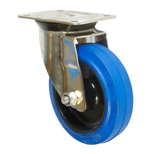 - Transportní otočná kola s modrou nešpinivou pryžovou obručí.