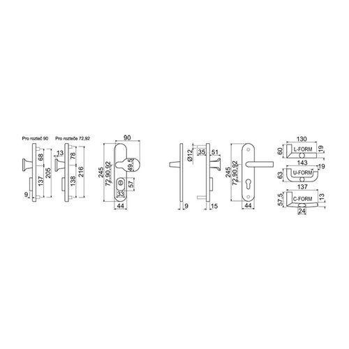 Hliníkové bezpečnostní kování R701, madlo/klika s překrytím vložky, ZB.72, TB3, nerez