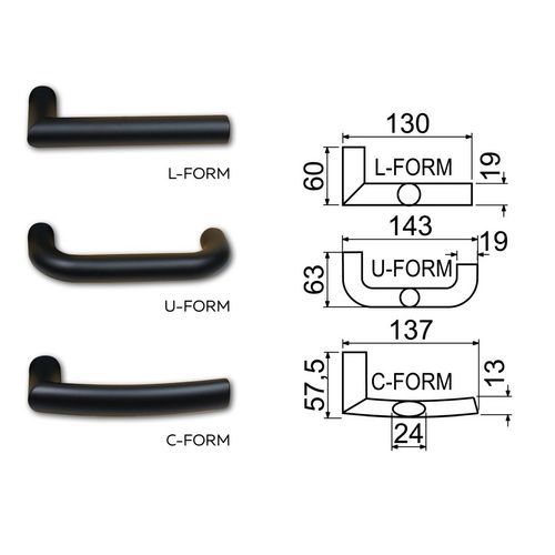Hliníkové bezpečnostní kování R701, madlo/klika s překrytím vložky, ZB.72, TB3, černá