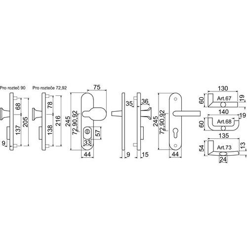 Hliníkové bezpečnostní kování R701, madlo/klika s překrytím vložky, ZB.90, TB3