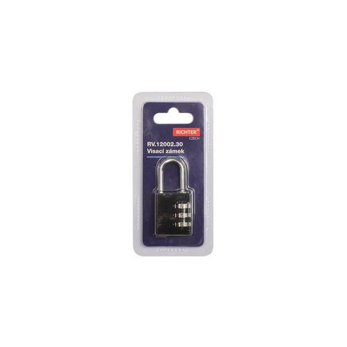 Hliníkový kódový visací zámek RV30 s eloxovaným povrchem, černý