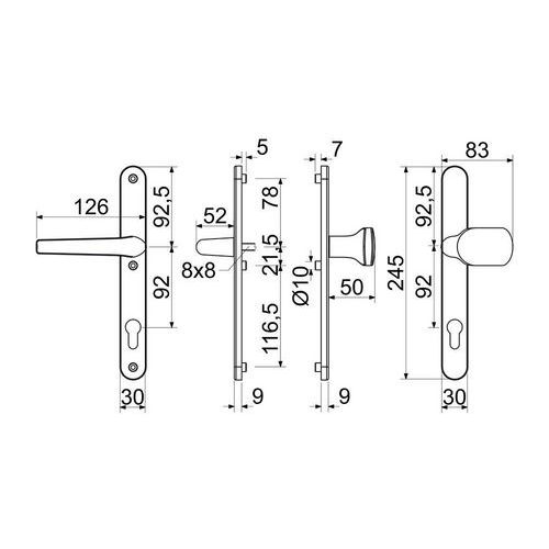 Hliníkové kování pro vstupní dveře, bronzový fluorcarbon