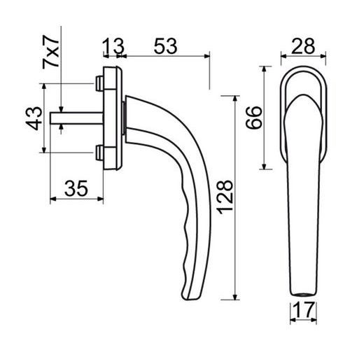 Hliníková okenní klika se zinkovým jádrem, imitace nerezu fluorcarbon