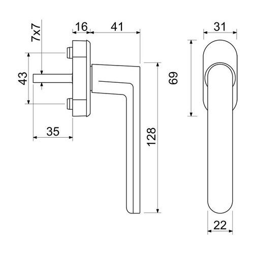 Hliníková okenní klika se zinkovým jádrem, bronzový fluorcarbon