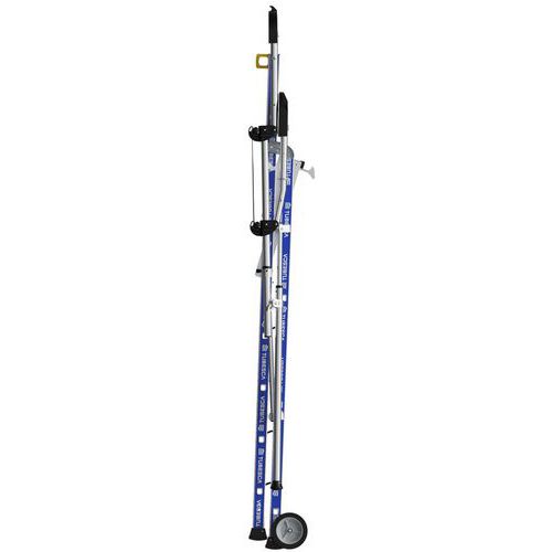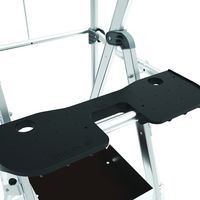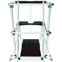 Pracovní plošiny Sherpamatic. Pevné 4stranné zábradlí s poloautomatickým zavíráním zadních zábradlí proti pádu. Protiskluzové schůdky 80 mm. Odnímatelný přihrádkový držák nářadí s nosností 25 kg, s integrovanými háčky (max. 10 kg). Výsuvné stabilizátory s milimetrovým nastavením. Vysoce komfortní protiskluzová podlaha 590 x 400 mm. Ergonomický a pohodlný pracovní prostor. Terénní pojezdová kola Ø175 mm. Vyrobeno v EU Max. zatížení (kg) : 150 kg