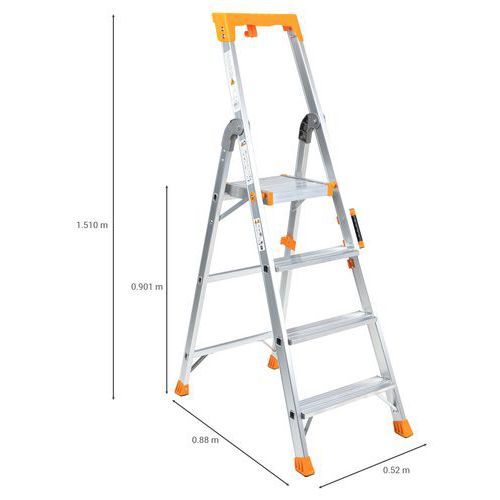 Hliníkové schůdky s držákem, 4 stupně - Manutan Expert