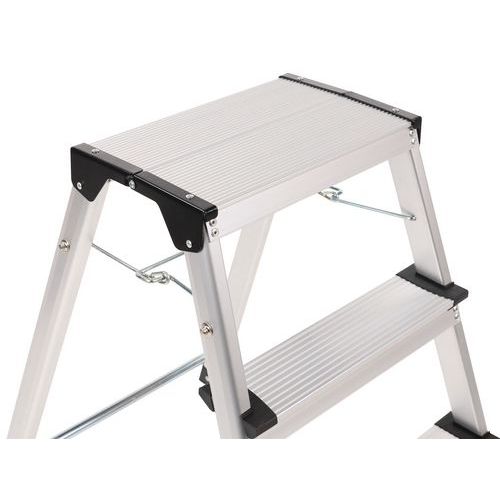 Skládací hliníkové stupátko se dvěma schůdky. Žebrované protiskluzové schůdky pro pohodlí uživatele. Snadno se přemisťuje díky čtyřem samonavíjecím kolečkům. Max. zatížení (kg) : 150 kg Záruka výrobce pro zákazníka : 10 let