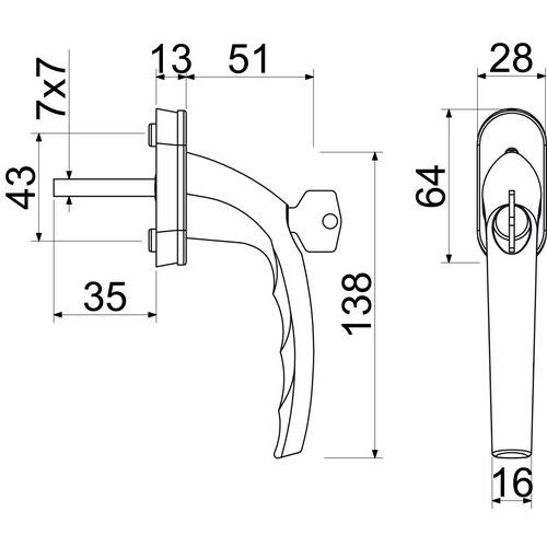 Hliníková uzamykatelná okenní klika se zinkovým jádrem, stříbrný fluorcarbon