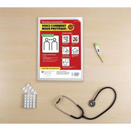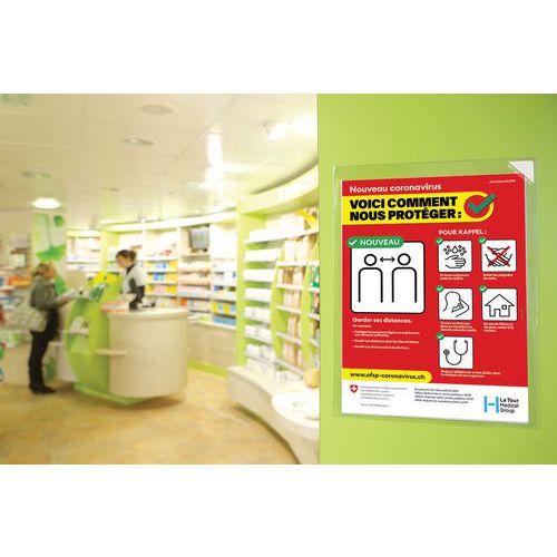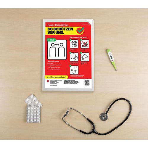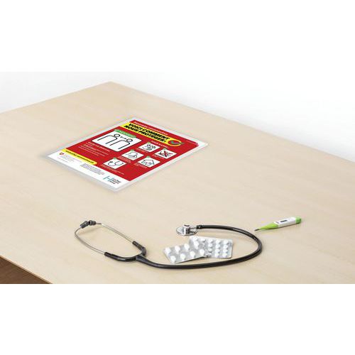 Informační kapsa na dokumenty s antireflexní úpravou a přemístitelnou lepicí páskou.