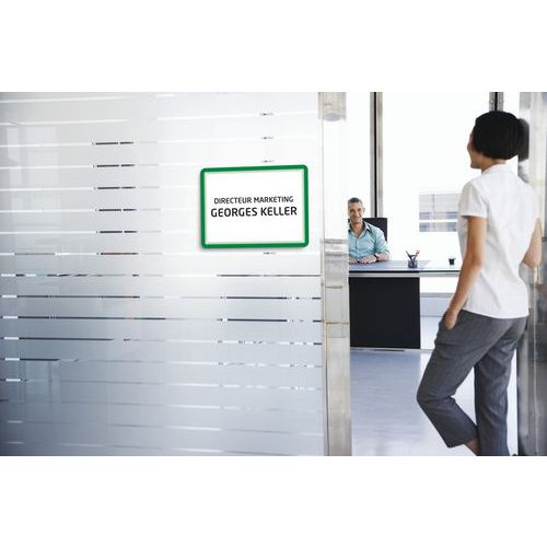 - Průhledné informační tabulky A4 v různých barvách slouží ke zviditelnění důležitých informací.
