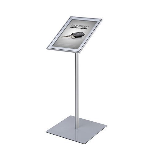 Informační stojany s rámem na plakáty. Variabilní nastavení pozice rámu. Klaprám s ostrými rohy a profilem 37 mm. Vyrobeno v EU