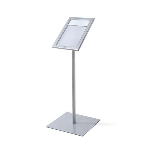 Informační stojany s uzamykatelnou vitrínou pro prezentaci jednoho nebo dvou letáků A4. Vysoká odolnost vůči vnějším vlivům, možnost použití v exteriéru. Stabilitu zajišťuje pevná kovová základna.